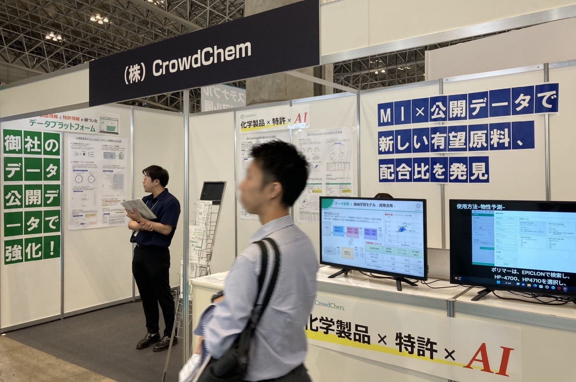 私も過去、化学メーカーに在籍していました。CrowdChemのプロダクトもそのときの経験からつくり上げたものです。また、メーカーにいた頃も、出展者として展示会に参加することもありましたね。私自身、展示会を見て回るのも好きですし。そうした経験も、展示会に出てみようと決めた背景にあります。