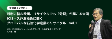 今回は、グローバルに活動するシンクタンク・ICISの久戸瀬極(くどせ・いたる)シニアエグゼクティブにインタビューを実施。久戸瀬氏は、ICISに属する前は長年、石油化学業界に身を置いてきた。2回に分けて、世界の石油化学産業とリサイクルについて、聞く。