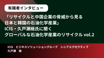 前回、中国の石油化学産業の伸張を基軸に、欧米の同業はどう動いているかを語った、ICISの久戸瀬極(くどせ・いたる)シニアエグゼクティブ。とりわけ、環境への意識が高いといわれる欧州でも化学分野のリサイクルの進展には苦労していることが分かる内容だった。前回の記事はこちら>