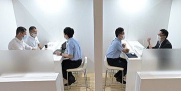 すべての入り口で、人を止めて体温測定・マスク着用確認を徹底していたので、安心して商談できた。