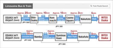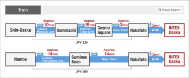 During the show period, Show Management runs a shuttle bus from JR Osaka Station to INTEX Osaka (No transfer needed).