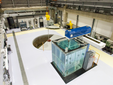 日本で唯一の撹拌を専門に研究する「撹拌技術研究所」。写真の第1テストヤードには地中埋め込み型の70トンの試験槽のほか、6トンのアクリル槽も地下ピットから観察可能。撹拌に関する基礎研究やユーザーとの共同研究・開発、新製品開発を推進している。