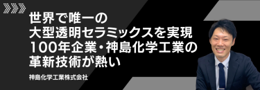 神島化学工業株式会社は、1917年に肥料製造で創業し、その技術を活かして化成品事業を展開してきた。炭酸マグネシウム酸化マグネシウムの製造を経て、高度経済成長期には住宅需要の高まりに応じ、不燃建材のけい酸カルシウム板の製造に着手した。さらに、セラミックス製造に取り組み、99.9%を超える高純度材料や独自の透明化技術を駆使して、世界で唯一のセラミックス製品を提供している。