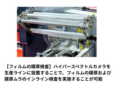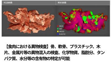 この技術を支えるのが、2020年にグループ化したフィンランド・Specim社のハイパースペクトルカメラ。従来の分光器が点でしか捉えられなかったのに対し、ハイパースペクトルは面として一括取得できる。色ムラや異物の分布を、非破壊・非接触で定量的に検出可能だ。「研究用途だった大型機器を、産業用として工場のラインなど手軽に利用できる製品に落とし込めたのが大きな転機でした」と剱持さん。現在は可視光から近赤外・中赤外まで、幅広い波長に対応するラインナップが揃う。
